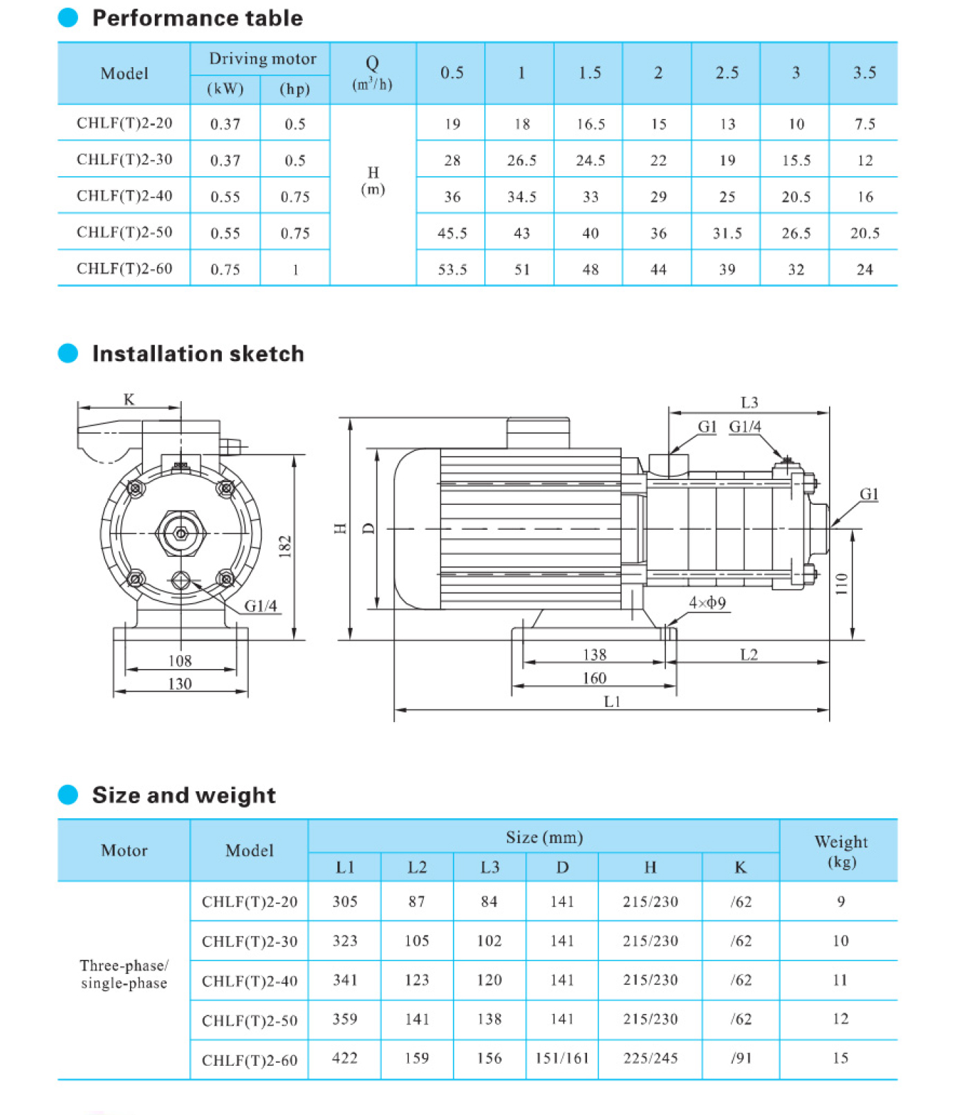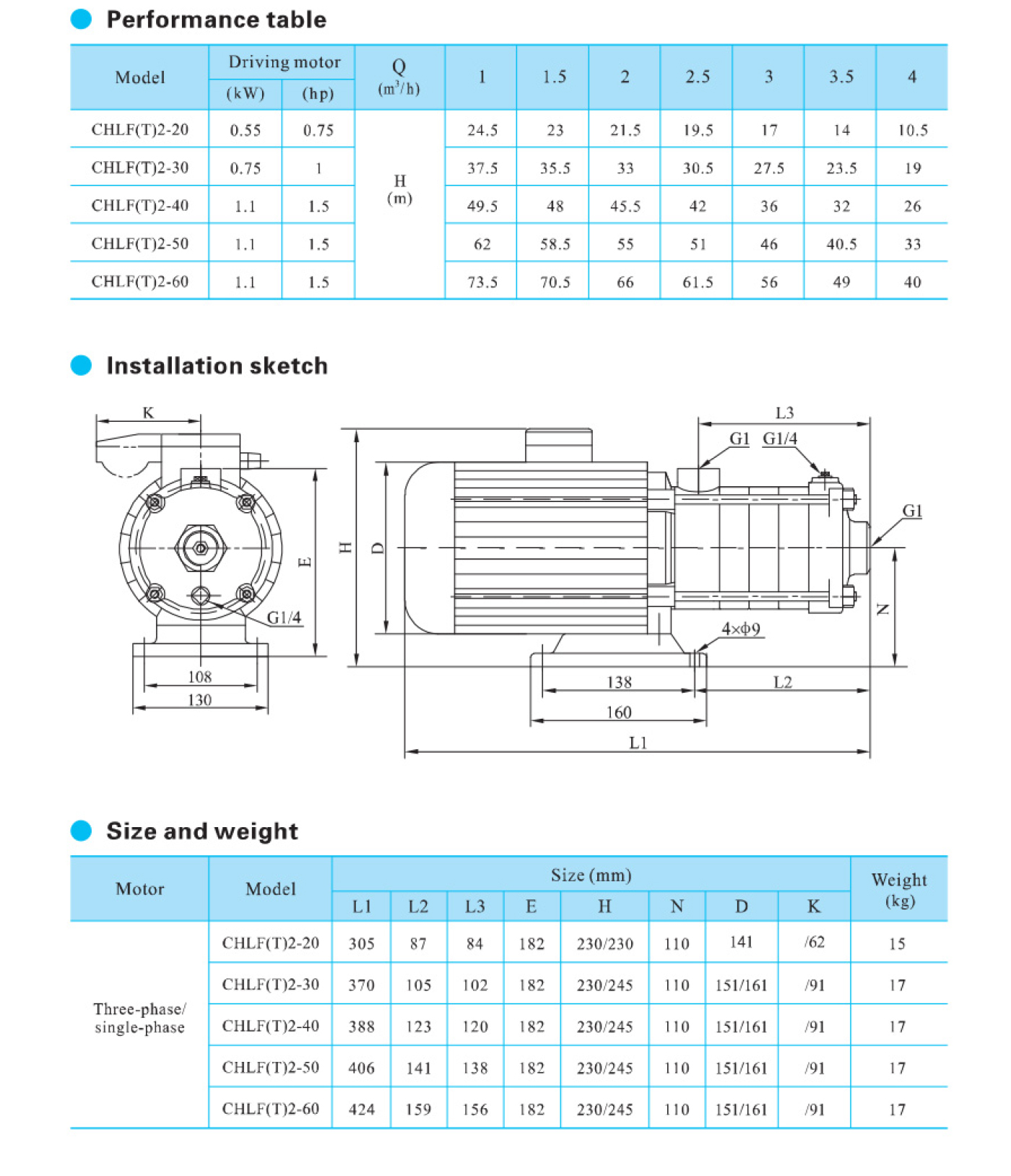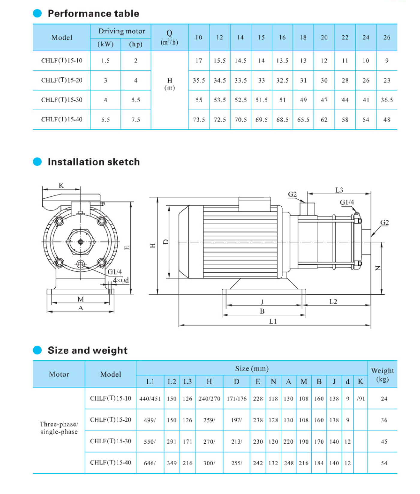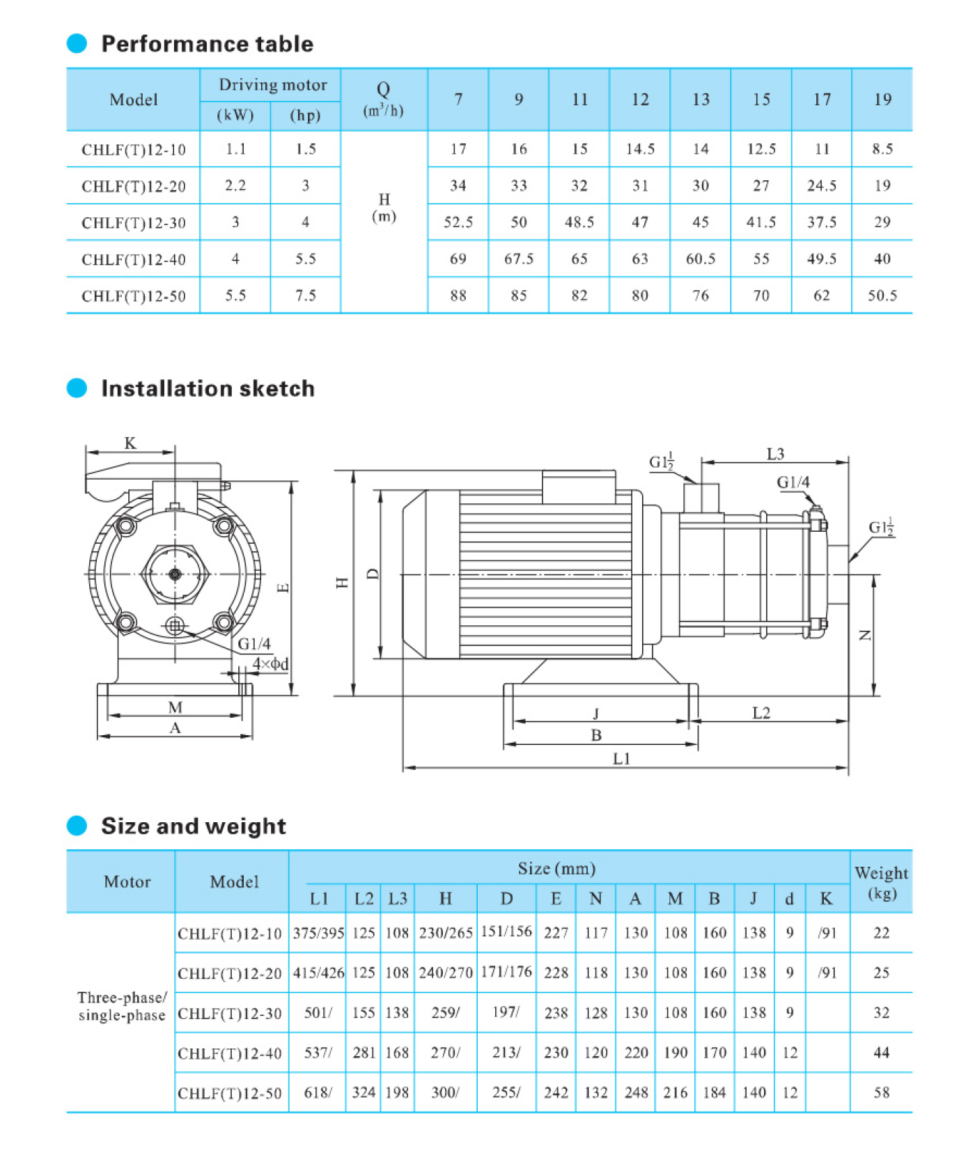 Series CHLF summus officiorum horizontalium ferro incorrupto multi scaena centrifugae sentiae instructus est cum hastili motore horizontali extenso, axiali suctu et missioni radiali.